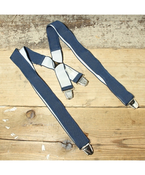 ドイツ製 PCT クリップ式 サスペンダー ゴム ネイビー 紺 EURO ヨーロッパ古着 022523ss105です。 ヨーロッパ古着のクリップサスペンダーです。 カラーはネイビー。 ベルト部分は伸縮性のあるゴム素材です。 金属部分はシルバーカラーです。 金具に擦れ、ベルトに使用跡があります。 詳細画像にてご確認ください。 使用感は多少ありますが、goodコンディションのEUROサスペンダーです。 【素材】 ゴム 【採寸サイズ】 全長:最大約122cm 幅:約3.5cm