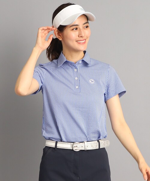 【デザイン】 夏の定番、サッカー素材にストライプ柄をデザインした半袖ポロシャツです。 お客様の声により誕生したアダバット人気アイテム。 ぽこぽこしたサッカー素材は、肌離れがよく夏に人気の生地です。 ストライプをデザインすることで、コーディネートがスッキリ見えるアイテム。 ライトブルー(391)は、ストライプがはっきりわかるデザインです。 シンプルなボトムとの組み合わせがおすすめ。 ダークネイビー(394)は、同色でストライプをデザインしました。 スタイリングが組み合わせやすいアイテムです。 ゴルフにはもちろん、レジャーやタウンシーンにも活躍します。 ご自身用や、ギフトにもおすすめです。 【素材・機能】 クールマックス(R)エコメイド・ファイバーは機能性に加えて、環境に配慮した素材。 少なくとも50%の使用済みのリサイクル・ポリエステルから作られており、涼しくドライな着心地です。 汗をすばやく吸い取り、高い通気性があるので、ドライな風合いを保ちます。 汗をかくゴルフでも快適に過ごせます。 サッカー素材を使用しています。凹凸感がありますので、肌への設置面積が少なくサラッとしています。 こちらの商品は主に秋に着用いただける商品です。 モデル情報:身長168cm B80 W59 H87 着用サイズ:38(M) 店舗へのお問い合わせ商品番号:119-17701 ●製品寸法: 36(S):着丈60cm B84cm 袖丈17cm 肩幅36cm 38(M):着丈60cm B90cm 袖丈17cm 肩幅37cm 40(L):着丈62cm B96cm 袖丈18cm 肩幅39cm 42(LL):着丈64cm B102cm 袖丈18cm 肩幅40cm 備考:
