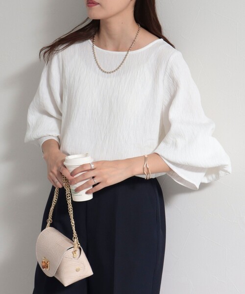 ◇fredy emue◇【2023 AW】人気のブラウスの秋冬バージョンが登場!●point・柔らかい風合いが特徴の楊柳素材で仕上げた1枚着トップス・表面感のある素材が雰囲気あるブラウスで、ぱっと1枚着るだけでコーディネートが完成する嬉しいアイテム・ボリュームスリーブが旬な着こなしを叶えてくれるデザイン・ゆったりとしたサイズ感がストレス無く着用いただけます・シンプルスタイルに華やかさをプラスしてくれるデイリー使いにちょうどいい1枚です・袖を上げるとよりふわっとした袖になり、手元が華奢見えする女性らしい着こなしに◎・カジュアルにはもちろん、きれい見えするのでオフィススタイルにもおすすめ透け感:オフホワイトのみ若干あr裏地:なし伸縮性:若干あり光沢感:なし洗濯:手洗い可●お取扱い上のご注意●*商品を長くご愛用していただきたいため、アテンションタグがある場合は必ずご確認の上、着用又はお取り扱い下さい。*店頭及び屋外での撮影画像は、光の当たり具合で色味が違って見える場合があります。商品の色味は、スタジオ撮影の画像をご参照下さい。*商品画像に関しては出来る限り忠実に表示出来るよう努めておりますが、お客様がご利用のモニターの設定及び特性により、実際の商品と比較し色味に若干の誤差が生じる場合があります。*画像の商品はサンプルとなりますので実際の商品と仕様、加工、サイズが若干異なる場合がございます。*製品洗い加工の商品は、多少の歪み、シワなどが見られたり、風合いやサイズ等が1枚1枚異なります。汗や雨等で濡れた時や、摩擦により色落ちし、他の衣料を汚すことがありますので(特に濃色のもの)ご注意ください。◇商品のお気に入り登録◇【お気に入りに登録 ♡マークをクリック】を是非ご活用ください! 再入荷の通知や、ラスト1点の通知、セールの通知がいち早く届きます。◇ブランドのお気に入り登録◇新商品や再入荷など、いち早くブランドのお得情報が届きます。