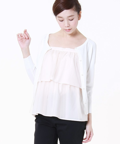 【Tiara Ballerina】 ラグランスリーブのシンプルなニット。 短めの丈は羽織としても、前を閉めてショート丈のプルオーバーのように 着て頂いても◎。 ボリュームスカートとの合わせがおすすめです。