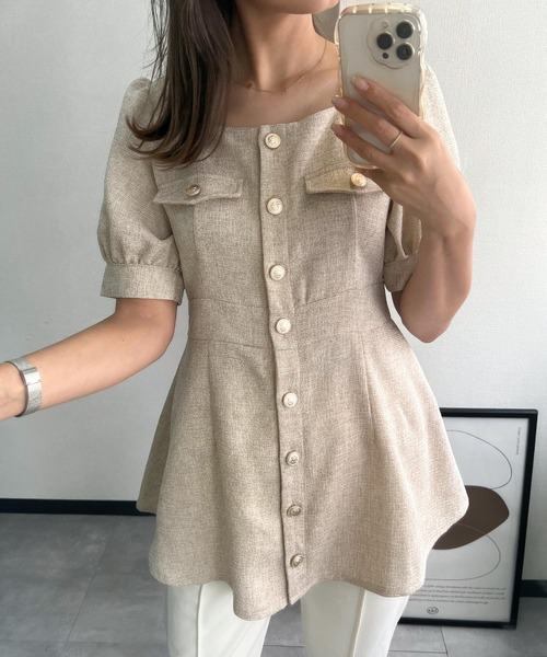 洗練された女性の雰囲気醸し出すツイードトップス。フロントにあしらったゴールドボタン、女性らしさを引き立てるディティールがエレガントに映える一枚。 フォーマル~カジュアルまで多様なシーンで活躍してくれるブラウスです。 【素材・サイズ感】 軽やかな薄手のツイード素材。 ふんわりとしたパフスリーブやペプラム風フレアシルエットで体型カバーしつつ抜け感もたらすデコルテデザインが魅力的。 チュニック丈なのでレギンスや細身のボトム合わせがおすすめです。 《KOBE LETTUCE ー神戸レタスー》 プチプラレディースファッションからコスメまで、トレンドアイテムを豊富に取り揃えております。 毎シーズン発売されるインフルエンサーとのコラボ商品はSNSでも話題に。