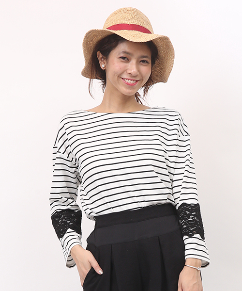 mystic(ミスティック) ベーシックなボーダープルオーバーを、袖にあしらった起毛レースでちょっぴりレディライクにアレンジしました。異なるテイストをミックスした意外性が、着こなしをトレンド感たっぷりに格上げしてくれます。ドロップショルダー×ボックスシルエットの叶えるリラックスマインドな着用感も見逃せません。