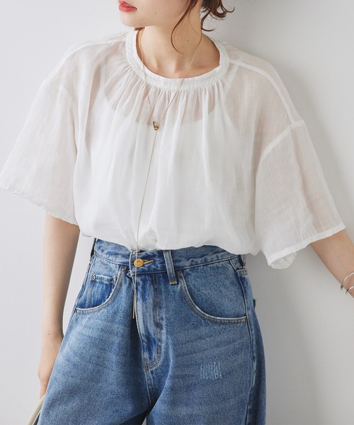 ピュアルセシン 2023 SS collection 【Our Journey】 ◇シンプルながらも一枚でサマになるデザインブラウス◇ ●商品のお気に入り登録 クーポンやタイムセール、再入荷通知やラスト1点などお得な情報を受け取ることができます。 ご登録をお忘れなく◎ ●デザイン 涼しげなシアー感が楽しめるラミープルオーバーブラウス。 シンプルながらも首元に施したギャザーが立体感を作り出し、デザイン性の高さが魅力。 長めの着丈に設定しているので、タックインもアウトもサマになります。 ●カラー展開 オフ/オリーブ/チャコールの3色展開。 ●素材 きれいな透け感が魅力のラミー素材。 通気性が良く薄手の素材なので爽やかな着心地です。 ●スタイリング きれいめスタイルならテーパードパンツやナロースカート ワイドパンツやデニムに合わせればカジュアルコーデが完成します。 =============================== 透け感:あり 裏地:なし 伸縮性:なし 光沢感:なし 生地の厚さ:薄手 【スタッフコメント】 年齢:20代後半/身長:154cm/普段着用サイズ:Mサイズ サイズ感:体のラインをカバーするオーバーサイズ。二の腕もしkっかりカバーしてくれます。 素材感:シャリ感があり薄手なので暑さが残る秋手前まで活躍しそうです。 =============================== ※撮影場所やお使いのモニター環境により若干お色味が異なる場合がございます。特にロケの撮影では明るく見える傾向にございます。 ※予約商品はサンプルで撮影をしております。若干の仕様が変更になる場合がございますので予めご了承の上ご注文くださいますようお願いいたします 。