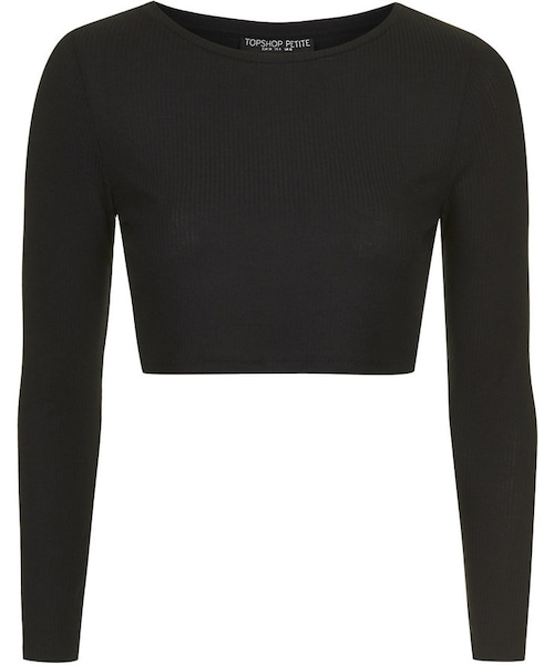 Petite long sleeve crop top in skinny ribbed finish. 51% viscose, 49% polyester. machine wash.