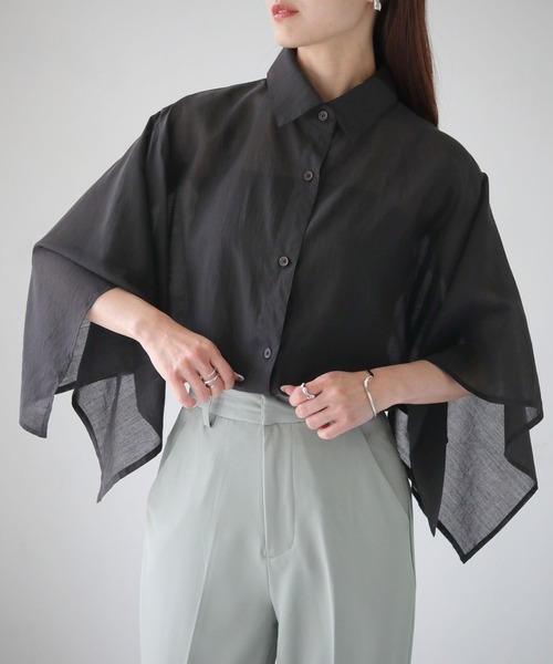 上品で涼しげな印象のシアートップス程よい透け感とスリットデザインが甘くなり過ぎず、大人フェミニンな1枚です。レーヨンを使用しており落ち感があり上品な印象をあえてくれます。ワイドスリーブの袖口にはさり気なく入ったスリットがワンポイントに!気になる二の腕もナチュラルにカバーしてくれます。≪Styling≫デニム合わせでもカジュアルになりすぎず女性らしい雰囲気に◎一枚での着用はもちろん、レイヤードコーデにも使えます。透け感をいかしたキャミワンピとのコーディネートがおすすめです。≪Fabric&Detail≫伸縮性・・・なし透け感・・・あり厚み・・・★★☆☆☆▼《お気に入り登録》のおすすめ▼【商品のお気に入り登録】気になるアイテムのハートマークを押してお気に入り登録すると完売カラーの再入荷通知やラストの通知、セール通知を受け取ることができます。【ブランドのお気に入り登録】新商品や再入荷など、いち早くブランドのお得な情報を受け取ることができます。ぜひご利用頂き、お買い物をよりお楽しみください。※撮影場所により、実際の色味と若干異なる場合がございます。 あらかじめご了承くださいませ。≪Brand introduction≫【cheriella / シェリエラ】mode x urban x spicyそのデザインに心を奪われる 時を生み出すブランド
