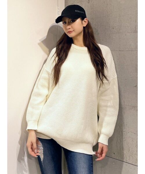 商品コメント ゆったりとしたサイズのルーズなニットトップスです。 シャツレイヤードもしやすくシンプルで着回し抜群、着心地はソフトで柔らかく、軽いです。 ドロップショルダーで丸みのあるシルエットが特徴的で秋冬から春まで長い期間お楽しみいただけます。 定番カラーのオフホワイトから今年らしいカラフルな幅広いカラー展開。 後ろの衿ぐりに同色で入ったGG刺繍がさり気ないポイントになって可愛いです。 低身長の方は、ミニボトムと合わせて頂きワンピース風にも着こなしていただけます。 コーデ:どんなボトムスにも合わせやすいので着回し力に優れています。 ダメージデニムPTと合わせて頂くと抜け感が出てオススメです。