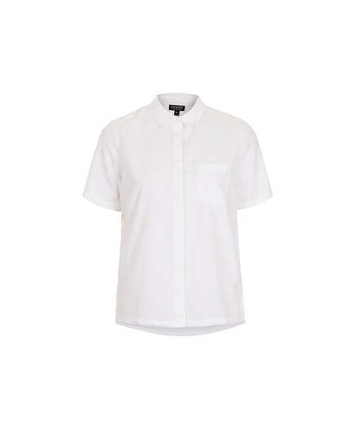 White cotton short sleeve shirt with front pocket detail. 100% cotton. machine washable.