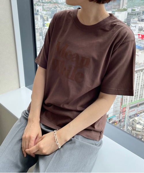 ■素材特性■ 綿天竺にピグメント加工を施しヴィンテージ感のある仕上がりにしています。 ■デザイン■ 同色のフロッキープリントで無地ライクに着れるロゴT。 ゆったりとしたサイズ感で二の腕やヒップ周りも適度にカバーしてくれます。 ■スタイリング例■ スカート、パンツどちらとも相性よく着ていただけます。 ニットパンツやカットパンツと合わせてリラックス感のあるスタイリングや、スカートを合わせて少し甘さをプラスしても◎ シンプルにデニムなどと合わせてカジュアルに仕上げても様になるアイテムです。