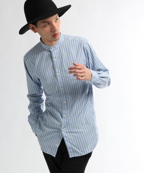 今期トレンドのスタンドカラーシャツにストライプ柄をあしらったアイテム。 やや細幅なストライプラインを採用しているので、上品かつ綺麗目な印象のシャツに仕上げました。 プルオーバーニット等とレイヤード出来る様に、やや着丈は長めに設定しているのでワンポイントに裾をちら見せさせる事も出来ます。 スタンドカラーシャツなので春先はハイネックカットソーをインナーに合わせても◎! ※店舗、WEBで在庫をお探しの際は下記の商品番号をお申し付け下さい。 商品番号→【562034】