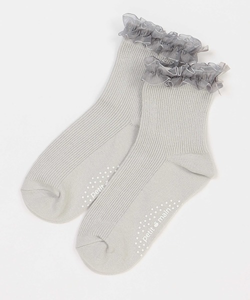 オーガンジーのフリルが華やかなソックスです。 ボリューム感のあるデザインで、ドレスシーンにも大活躍します。 シックで落ち着いたカラー展開も見逃せないポイント。 リブ素材でフィット感が良く、はき心地が快適です。