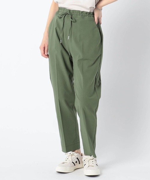 ストレッチイージーパンツ 履きやすさとオフィスカジュアルもOKな、きちんと感を兼ね備えたイージーパンツです。 高いストレッチ性のある生地が特徴の、ストレスフリーなパンツです。 秋に販売して人気の高かった、「ストレッチシリーズ」を暑い季節にも履けるように軽い素材に変更しました。 シルエットは裾に向けて細くなるテーパードシルエットで、センタープレスを入れる事できれい目なスタイリングもこなせる1本です。 ■point *スッキリと見せてくれるテーパードシルエット *着心地快適なストレッチ素材 *オフィスカジュアルでも着用可能 ■detail *ウェストは後ろだけゴム仕様になっているので裾をインしてもスタイリッシュに見せてくれます。 *9分丈なので足元がもたつかずきれいなシルエットです。 ■fabric …………………… 透け感:なし 裏地:なし 伸縮性:あり 光沢感:わずかあり 生地の厚さ:薄手 洗濯方法:手洗い可 …………………… 洗濯時、多少縮みが出る場合がございます。 ※詳しいお手入れ方法は商品タグをご参照ください モデル身長 165cm フリーサイズ ■coordinate *ロゴTシャツと合わせてカジュアルコーデに。 *細身かつテーパードシルエットなのでBIGサイズのトップスとも相性良し。 *キレイ目のシャツやブラウスと合わせる事でオフィス向けコーディネートも可能です。 …………………… 【お買い物をお楽しみいただくために】 *気になった商品の「お気に入り登録」 完売カラーの再入荷通知や残り1点の通知、お得なタイムセール通知も受け取ることが出来ます。 *ブランドのお気に入り登録 新商品や再入荷など、ブランドからのお得な情報を受け取ることが出来ます。