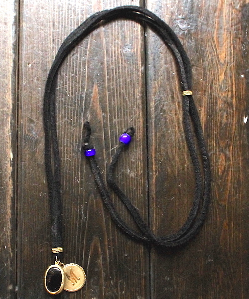 人気のアンティークブラス・コレクションがバリエーション豊富に登場! 厳選した天然のブラックオニキスとブランドのロゴモチーフをヘッドにしたネックレスです。 石のプレートとブランドのロゴモチーフは真鍮に特殊なアンティーク加工を施し、温かみのある色味と高級感を持たせました。 革紐にはヘッドとネイティブビーズと相性の良い、しなやかなディアスキン(鹿革)を採用。 スタイルを選ばず、様々なシーンでご着用いただけます。 シンプルなカットソーやTシャツ等の首元にさりげないアクセントをプラスしてくれる人気シリーズは、プレゼント・ギフトとしても大変おすすめです。