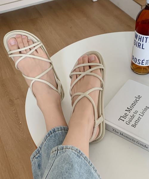 ◆POINT◇女性らしい大人カジュアルなスタイリングが楽しめるフェイクレザー素材のサンダルクロスストラップのデザインで足元を華奢に見せてくれますソールに厚みがある、厚底デザインがカジュアルな雰囲気をさらに増します◎インソールのクッションが脚の疲れを軽減してくれるので、歩きやすいです!その日の服のスタイリング次第でスポーツテイストにも使えるので、今期のマストアイテムです!※合成素材は特性上、多少の石油のようなにおいがする場合がありますので、気になる際には風通しの良いところに保管していただくことをお勧めいたします 【2色展開】ブラック/アイボリー※着用身長によって画像イメージと異なる場合があります。 ※撮影環境により、実際のカラー、形状、デザイン等多少異なる場合がございます。【サイズ表記】商品の記載サイズと実際のサイズ目安になりますので、ご確認のうえ、お買い求めください・36サイズ 目安 ⇒ 22.5cm~23cm相当・38サイズ 目安 ⇒ 23.5cm~24cm相当・40サイズ 目安 ⇒ 24.5cm~25cm相当▼POINT・2023SS・2023春夏・夏コーデ・カジュアル・トレンド・韓国ファッション・フェミニン・レースアップ・PU・レースアップシューズ・大人カジュアル 《 お知らせ 》 ▼商品のお気に入り登録 お気に入りアイテムの値下げ・再入荷・在庫1点などの通知を受け取ることができます。 ▼ブランドのお気に入り登録 新商品や再入荷、セール、クーポン配布などお得な情報を受け取ることができます。是非、お気に入り登録してみてください♡