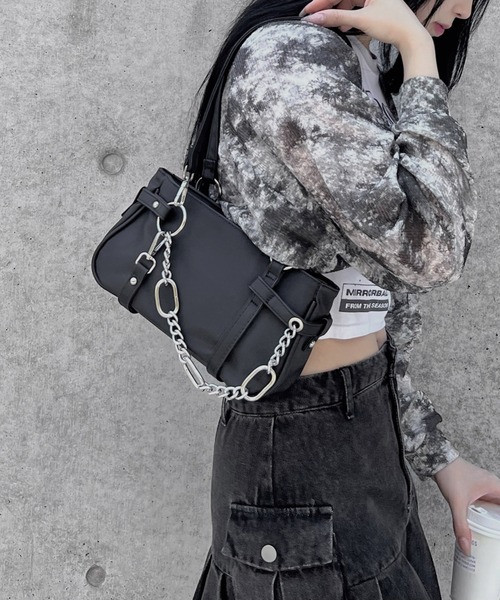 ハーネスのようなベルトとチェーンデザインが個性的なミニショルダーバッグ。バッグ口はZIPで開閉できます。内ポケットは小物の収納にも便利です◎。仕様:ベルト、チェーン、内ポケット付き、マチ《お気に入り登録》・「商品のお気に入り登録」で再入荷通知や、ラスト1点の通知、セール通知も受け取ることができます。<br>・「ブランドのお気に入り登録」で新商品や再入荷など、いち早くブランドのお得な情報を受け取ることができます。<br>【Figments/フィグメンツ】ファッション、音楽、カルチャー。時代とともに変化を楽しむ者たちに向けた、Realityを覆し、<br>常識を壊すユニセックスファッションブランド。<br>