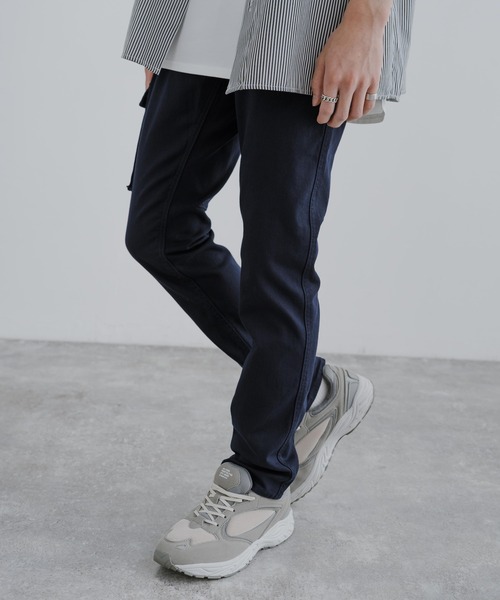 足元にかけて細くなるテーパードシルエットが特徴的な、スリムカーゴパンツ。キレイめ~カジュアルまで様々なコーデに取り入れやすいアイテムです。丈夫で伸縮性に優れたストレッチツイルを使用し、ガンガン穿けるパンツです。■ 野暮ったくならない、テーパード仕様腰周りは動きやすく、膝下から足元にかけて細くなるテーパードシルエットが特徴です。キレイめ~カジュアルまで様々なコーデに取り入れやすいアイテムです。■ 実用性とシルエットが計算された、ポケットサイド・バック・カーゴと計6つのポケットが配置されています。片側カーゴポケットをやや上の位置に配置することにより、足のラインをスッキリとした印象にさせます。後ろ側はヒップラインを損なわない、玉ぶちポケットデザインです。また、右サイドポケット部分にはコインポケット(ウォッチポケット)も配しています。■ 丈夫で伸縮性に優れたストレッチツイル素材にはワークアイテムに用いられることが多いコットンツイル生地を使用。丈夫で、洗濯を繰り返して褪せた表情も楽しめる実用的な生地です。また、少量のポリウレタンも混紡することで、伸縮性にも優れています。【KRIFF MAYER/クリフメイヤー】アメリカンカジュアル(アメリカ西海岸)をベースに現代のトレンドをMIXさせた古着感覚のデイリーウエア。古着が持つ特有の色合いやヤレ感、そして古着が作られた背景(カルチャー)を感じさせるデザインやプリント柄に現代のトレンドとクリフメイヤー独自の切り口でミックスしたスタイルです。ベーシック、かつオリジナリティーあふれる新しいアメリカンデイリーウエアとして、現代を生きる人々に提案します。=着用コメント=・モデル MASASHI:身長173cm / 体重55kg着用サイズ:Mウエスト:結構なゆとりだったため、がっつりベルトで締めました。丈感:少したるみがありましたが、調節せずに丁度良く穿けました。・スタッフA:身長165cm / 体重52kg / 普段S-M着用着用サイズ:Sウエスト:かなりゆとりがあるので、ウエストを調節して穿きました。丈感:かなりたるみがあり、ロールアップをしてきれいに穿けました。・スタッフB:身長180cm / 体重64kg / 普段XL着用着用サイズ:XLウエスト:程良く余裕があり、苦しい部分はありませんでした。丈感:やや裾にたるみのある丈感でしたが、ダボ付きなく穿けました。【お買い物をお楽しみいただく為に!】▼商品のお気に入り登録完売カラーの再入荷通知や、ラスト1点の通知、セールの通知も受け取ることができます。▼ブランドのお気に入り登録新商品や再入荷等、いち早くブランドのお得な情報を受け取ることができます!