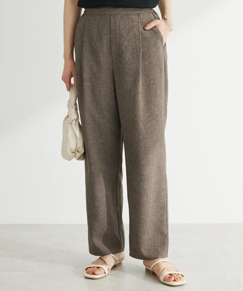 麻のようにさらりとした素材感が涼しげムードを演出するパンツ。接触冷感加工を施しているので、ひんやりとした肌触りを楽しめます。すとんとしたストレートシルエットが、身体のラインをぼかしてくれるのも魅力。デイリーユースやオフィスカジュアルにもお使いいただけるアイテムです。透け感[無し] 裏地[無し] 伸縮性[無し] 光沢感[無し] 生地の厚さ[薄手] 付属品[無し] ポケット[有り]前2つ 後2つ●製品寸法:F:ウエスト[後ゴム仕様]64~cm ヒップ102cm 総丈98cm 股下64.5cm わたり周り34cm 裾幅21cm備考: