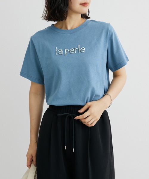 パールドットのロゴが上品なアクセントに映えるTシャツ。シンプルながらも目を引くデザインで、大人のカジュアルスタイルを演出してくれます。綿100%素材のさらっとした着心地の良さも魅力ポイント◎ワードローブの定番アイテムとしてもおすすめの1着です。 透け感[無し]※オフホワイトはやや有り 裏地[無し] 伸縮性[やや有り] 光沢感[無し] 生地の厚さ[普通] 付属品[無し] ポケット[無し]●製品寸法:F:バスト47cm 着丈56cm 袖丈19.5cm 肩幅38cm 裾幅48cm備考: