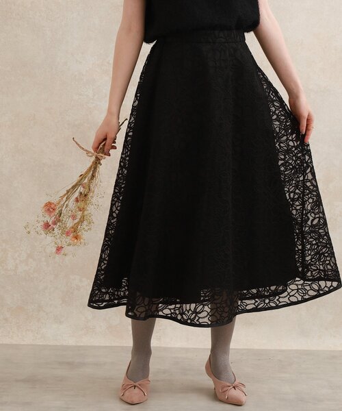 CoutureBrooch秋冬新作!人気の刺繍デザインが可愛い、クラシカルなフレアスカート♪~POINT~・こだわりの詰まった、繊細なコード刺繍をチュール生地に取り入れたフレアスカート・裾にはグログランテープをたたき付け、アクセントと秋冬らしい重厚感を加えています。・バックウエストゴムで高見えながらもラクチンな着心地・少し長めのミディ丈は秋~冬までブーツ合わせで長く着用できます。【ディティール・機能】・クラシカルなコード刺繍チュール生地を表地に使用。裏地はサテン生地を使用しています。※裏地あり後ろウエストゴム仕様※ポケットなし【スタッフコメント】・maki(163 )クチュールブローチで大人気!刺繍柄のフレアスカートに新作登場です♪とても繊細なタッチの刺繍デザインが目を惹く、汎用性の高いミディ丈フレアスカート。お仕事着にオフィスカジュアルスタイルはもちろん、お出かけシーンにも着映える一着です!モデル情報:身長167cm B80 W59 H82 着用サイズ:38(M)店舗へのお問い合わせ商品番号:508-77014●製品寸法:38(M):総丈83cm W67cm40(L):総丈84cm W70cm42(LL):総丈86cm W73cm備考: