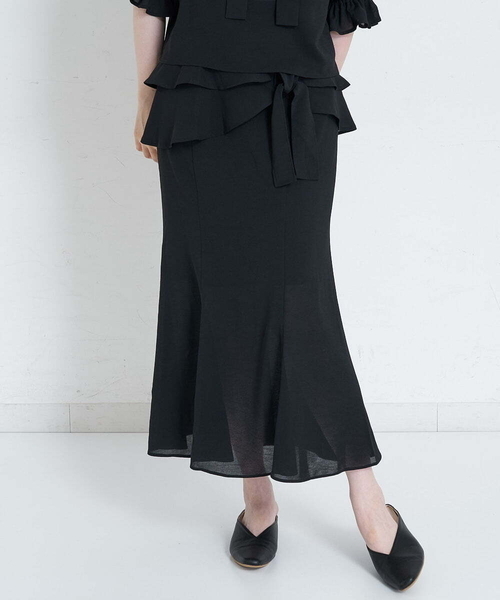 ◆マーメイドシルエットとフリルで大人可愛い一着◆ ヒップ部分に2重のフリルが付いていて、レイヤードに見えるスカート。 フリル先にリボンがついてるので、一回結んで垂らすとガーリーな着こなしに◎ さりげないマーメイドシルエットで履きやすさも抜群です! 同素材のブラウス(A1BHS42072)とセットアップで着用できます。 マーメイドシルエットのワンピースのように着こなすことができます。 …………………… 透け感:なし 厚さ:普通 伸縮性:なし 洗濯方法:家庭洗濯可 …………………… ≪お気に入り登録機能の使い方≫ ■商品のお気に入り登録(ハートマークをクリック) 再入荷通知や値下げ等、お得なご案内を受けることができます。