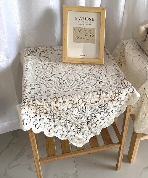 《Made in I》2023 New Item.『:サイドテーブルやディスプレイ棚におすすめ♪シアーレースマルチクロス:』〇Design〈SIZE:60×60cm〉・韓国カフェ風♪1枚敷くだけで印象を変えられるテーブルクロス。・60×60cmの正方形型のミニサイズで使い勝手も抜群。・レトロな花柄のレース模様が可愛らしいアイテムです。・テーブルだけでなくディスプレイ棚や、サイドテーブルに敷いたりなどマルチに活躍。・清潔感のある白は、優しい雰囲気の韓国カフェ風インテリアに仕上げます。・ほどよいシアー感がエレガントなテーブルクロスです。・大きめのサイズも展開しております→90×90cm《MI-23-1-8024》韓国、北欧インテリアが好きな方は是非。\ お買い物をよりお楽しみいただくために /● 商品のお気に入り登録(ハートマークをクリック)完売カラーの再入荷や、ラスト1点のお知らせ、セール情報などの通知を受け取ることができます。● ブランドのお気に入り登録新商品や再入荷など、お得な情報をいち早く受け取ることができます。● 最短で翌日お届け商品をカートに入れた後、注文内容の確認ページで「即日配送」を選択していただければ、最短でご注文した翌日にお届け致します。是非ご利用頂き、お買い物をお楽しみください。