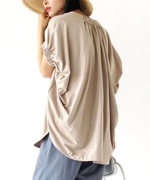 一枚で様になる、抜け感たっぷりチュニック 後ろのネックと袖口をゴムで絞った、さりげないアクセントをあしらったチュニック。 くしゅっとしたバックスタイルが女性らしい雰囲気に。 すとんと落ち感のあるシルエットとラウンドヘムが抜け感をプラスしてくれて、さらっとこなれコーデを叶えます。 厳選されたコーマ綿を度を詰めて編むことでしっかりとした肉感とバイオ加工を施すことで毛羽立ちの少ない、クリアで独特な風合いに仕上げました。 洗濯:洗濯機使用可 ※お洗濯の際はネットをご使用ください ※アイロンの際はあて布をご使用ください <MIMIMEMETE(ミミメメット)> ヴィンテージ好きが見つけたモード。 日常に飾り気をもたらし今日の温度を上げる服。 ジャンルや年代にとらわれることなく、今着たい服を自由に着る。 それはトレンドだけでもなく、奇抜なものでもなく、でも着ると少し温度があがるような。 ヴィンテージショップで自分だけの1枚を発見したような気持になるそんなアイテムを 毎シーズン提案していきます。