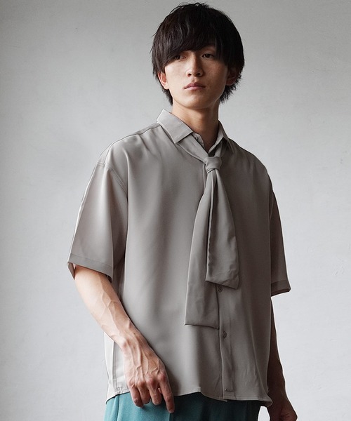 【ルーズサイズタイ付き半袖シャツ】カジュアルな印象の半袖シャツに、程よく上品に決まるボウタイを合わせることで、清潔感のある大人の雰囲気漂うモードな印象に。ボウタイとシャツが同素材で作られているのできちんと感が出て上品に着用していただけます。生地はポリエステルを使用したさらりとした肌触りの生地。程よくツヤ感があり、上品見えする表情をしています。■生地の伸縮性 ・・・ やや伸縮します。■生地の透け感 ・・・ やや透け感があります。■生地の厚み ・・・ 標準です。■着用のサイズ感 ・・・ 少しゆったりしたサイズ感です。■裏地の有無 ・・・ 無し。●推奨サイズ M:~ 175cmL:176cm ~●モデル着用サイズ男性モデル:175cm|Mサイズ=============================【お買い物をもっと便利に楽しく♪】■商品のお気に入り登録をすると・・・完売カラー・サイズの再入荷通知や、ラスト1点の通知、お得なセール情報も受け取ることができます!■ブランドのお気に入り登録をすると・・・新商品や再入荷のお知らせなどいち早くブランドの最新情報を受け取ることができますのでご登録をオススメします!