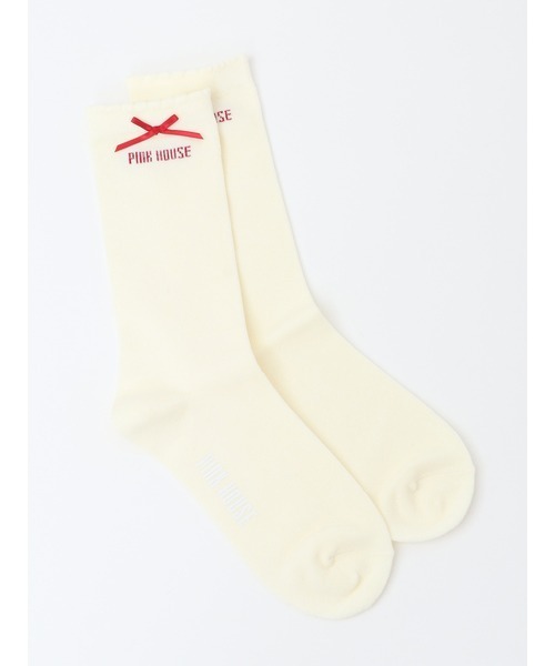PINK HOUSEのロゴとミニサテンリボンのワンポイント入り、シンプルで合わせやすいソックス。履き口の部分には軽めにフリルを施して可愛らしく仕上げています。 定番カラーを中心に、少し秋を意識したダークな色合いを中心に取り揃えています。着合わせしやすい定番的なソックスは、色違いで揃えておくととっても便利なのでぜひ!