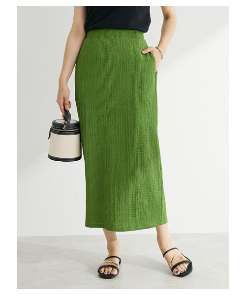 表面感のあるふくれジャカードがコーデのワンポイントになるスカート。 すとんとしたIラインのシルエットなので、すっきり見えを演出してくれます。 ゴム仕様のウエストがラクな着心地を実現◎ トップスをインしたメリハリのあるスタイリングもおすすめです。 透け感[無し] 裏地[無し] 伸縮性[有り] 光沢感[やや有り] 生地の厚さ[普通] 付属品[無し] ポケット[有り]前2つ