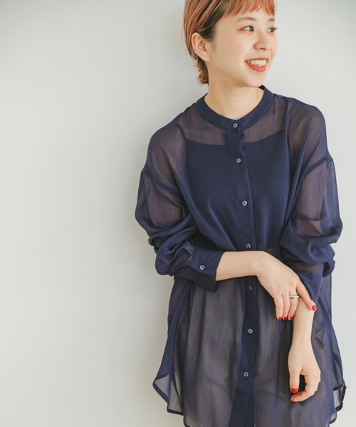程よい透け感で軽やかな印象のシアーに凹凸のある表情のヨウリュウ加工を施した涼やかな生地で仕立てたバンドカラーシャツ。サラッとした肌触りで暑い時期から晩夏まで着回していただける1着。一枚着でも羽織りでも取り入れやすく、日除けアイテムとしても重宝します。 【2023 Spring/Summer】 ※商品画像は、光の当たり具合やパソコンなどの閲覧環境により、実際の色味と異なって見える場合がございます。予めご了承ください。 ※商品の色味の目安は、商品単体の画像をご参照ください。 ▼お気に入り登録のおすすめ▼ お気に入り登録商品は、マイページにて現在の価格情報や在庫状況の確認が可能です。 お買い物リストの管理に是非ご利用下さい。 ----------------------------- 透け感:あり 伸縮性:ややあり 裏地:なし 光沢:なし ポケット:なし -----------------------------