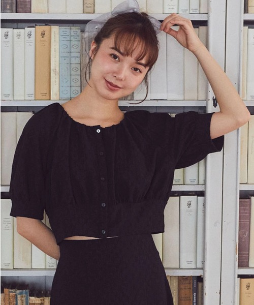 表面感のあるジャガード生地が華やかさを演出するプルオーバー。 スリーブはふんわりとボリュームがあり、やわらかい印象を与えます。 短めの丈感なので、すっきりとしたスタイリングを実現できるのもポイント◎ 同デザインのスカートと組み合わせて着用いただけるアイテムです。 透け感[無し] 裏地[無し] 伸縮性[やや有り] 光沢感[無し] 生地の厚さ[普通] 付属品[無し] ポケット[無し] >> セットアップのスカートはこちら ●製品寸法: F:バスト49cm 着丈42cm 桁丈43.5cm 裾幅40cm 備考: