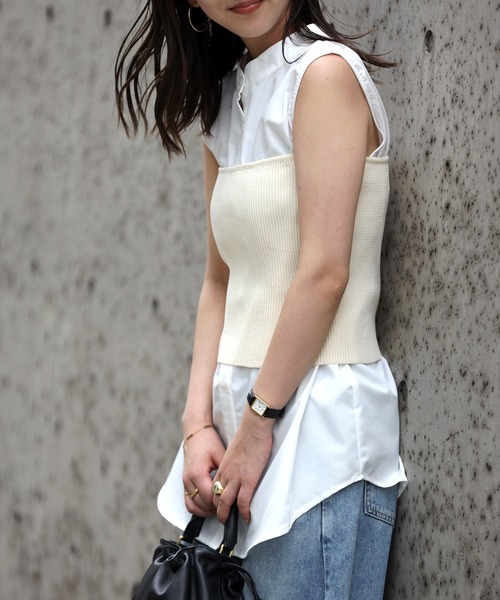 ベーシックなデザインでおしゃれに着回せるニットビスチェドライタッチなニット素材のシンプルなリブニットビスチェ。リブ編みで伸縮性があり、着心地は楽ちんです。普段のコーデにプラスするだけで旬なスタイルが完成する優秀アイテム。シンプルなトップスやワンピースと重ねたり、シャツのインナーとして取り入れても◎オールシーズン使える優秀レイヤードアイテムです。また、1枚でクロップド丈のベアトップとしても着用いただけます。------------------------透け感/なし光沢感/なし伸縮性/あり裏地/なし厚み/普通------------------------【Information】◆《お気に入り登録》がオススメ◆・「商品のお気に入り登録」で再入荷通知や、ラストの通知、セール通知も受け取ることが出来ます。・「ブランドのお気に入り登録」で新商品や再入荷など、お得な情報を受け取ることが出来ます。※撮影時のライティング、ご覧になっているモニター・PC環境により、実際の商品と色味が異なって見える場合がございます。予めご了承をお願い致します。※モデル着用画像は実際の色と多少異なる場合がございますので物撮り画像をご確認ください。
