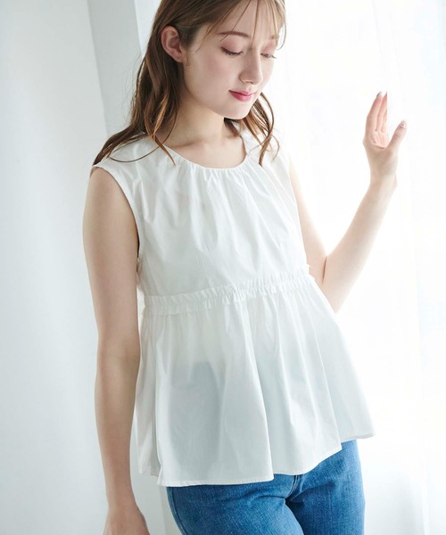 フリル切り替えが可愛いペプラムブラウスふわっと広がるペプラムデザインがフェミニンな雰囲気のノースリーブブラウス。切り替え部分にあしらわれたフリルが、アクセントをプラスします。Iラインのスカートやボリュームのあるワイドパンツにも合わせやすく、様々なスタイリングが楽しめるアイテムです。------------------透け感:ややあり生地の厚さ:薄手裏地:なし伸縮性:なし------------------※撮影時のライティング、PCやスマートフォンの環境により写真の色味が実際の商品と異なって見える場合がございます。ご了承の上お買い求め下さいませ。※モデル着用画像は実際の色と多少異なる場合がございますのでマネキン画像をご確認ください。《 お知らせ 》▼商品のお気に入り登録お気に入りアイテムの値下げ・再入荷・在庫1点などの通知を受け取ることができます。▼ブランドのお気に入り登録新商品や再入荷、セール、クーポン配布などお得な情報を受け取ることができます。 ※ご注文いただいた予約商品のお届け時期の確認は、注文履歴ページより行えます。