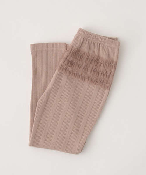 ふわっと柔らかく肌触りもばつぐんで、長時間履いていてもストレスフリーなレギンスです。バックのチュールフリルでガーリーな甘さもプラスしました。 ワンピースやチュニックなどのレイヤードスタイルには欠かせないアイテムです。 程よい厚みで秋にもぴったりなアイテムです。 【透け感】透ける 【生地の厚さ】普通 【伸縮性】あり 【裏地】なし 【ポケット】なし 【アジャスター】なし サイズ表記100cm【ウエスト】42【股上】20【股下】34【裾巾】9 サイズ表記110cm【ウエスト】44【股上】21【股下】40【裾巾】9.5 サイズ表記120cm【ウエスト】46【股上】22【股下】46【裾巾】10 サイズ表記130cm【ウエスト】48【股上】23【股下】52【裾巾】10.5 サイズ表記140cm【ウエスト】50【股上】24.5【股下】58.5【裾巾】11