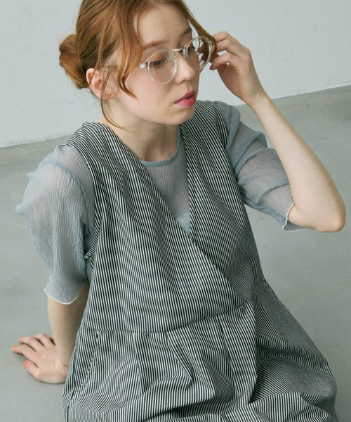 【バイカラーのメロウフリルがポイントのシフォントップス】 ・身体のラインを拾い過ぎない程よいシルエットが魅力的。 ・程よく開いたラウンドネックで顔周りをすっきりと見せてくれます ・プリーツ加工が施されているので、しわが気にならずアイロン要らずなのも嬉しいポイント◎ ・肘にかかる絶妙な袖丈で気になる二の腕をカバーしてくれるのも◎ ・袖口と裾のメロウデザインがさり気なくレディライクな雰囲気に ・軽く伸縮性のある涼し気なシフォン生地で爽やかに ~スタイリング~ 合わせるアイテムによってきれいめにもカジュアルにも着回せる1枚。 トップスとしてのメイン使いはもちろん、キャミワンピースやサロペットのインナーとしての着こなしもおすすめです。 - - - - - - - - - - - - - - - - - - - - - - - - - - - - - - - - - 透け感:あり 裏地:なし 伸縮性:あり 光沢感:なし 洗濯: 手洗い可能 - - - - - - - - - - - - - - - - - - - - - - - - - - - - - - - - - ※こちらの製品は商品の特性上、形やサイズに多少の個体差が生じる場合がございます。 あらかじめご了承くださいませ。 また、大きな誤差が生じておりましたらお早めにチャットよりご連絡をお願いいたします。 ※着用、お取り扱いの際は、商品についている品質表示とアテンションタグを必ずご確認下さい。 シアートップス/夏服