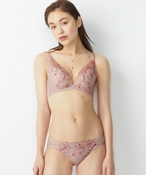 ■フック&アイ: 2段3列:B-Cカップ、D(65/70/75) 3段3列:D(80) ■ブラジャーのサイズ展開: B65 B70 B75 C65 C70 C75 C80 D65 D70 D75 D80 ■パッドの有無:あり(ふかふかパッド) ※パッドは、ピンク、ブラックのいずれかが付属します。色はお選びいただけません。 ■セットショーツサイズ: ヒップサイズ:[M]:87-95cm / [L]:92-100cm 【ショーツLサイズ】F75、 G75、アンダー80以上 【ショーツMサイズ】それ以外 ※セットショーツのサイズ交換はできません ■はきこみ丈:普通 チャーミングラマーシリーズ(AMOSTYLEステッチ)がリニューアル。選べるチャーミングラマーとチャーミングラマー スリムライン DeepVの2フィット! “チャーミン”を象徴するような花言葉を持つラナンキュラスの花をイメージしたエンブロイダリーレース。 ソフトで軽い花びらの重なりをラインで表現したレースデザインにはAMOSTYLEのブランド名が隠れています。 ラナンキュラスの花言葉:「とても魅力的」「華やかな魅力」 【ブラジャー】 軽やかな線画調の花柄のエンブロイダリーレースがフェミニンな印象。 レースを肩先に向かってあしらって透け感を作り、レースの繊細さを際立たせたデザイン。 ディープVシルエットで前中心が低く、カップ脇の高い深いVラインを作るカップパターン。 カップ下側のパターンをシャープなライン(容量が少ない)に設計しているので、バストを内側にプッシュして谷間を作ります。 U字ヘム仕様で脇が高く設計され、フラット仕上げになっているので、脇や背中の段差がさらにおさえられ、アウターをすっきりと着こなせます。 ふかふかパッドは多層構造のファイバーフィル素材で谷間ふっくら!取り外し可能。 カップ肌側サイド部分に伸びないリジット素材を裏打ちしているので、バストの広がりをおさえます。 保形性に優れたカップ素材、“エンジェルクッションライト”を使用。ソフトで軽い着けごこちでありながら、きれいなバストラインをメイクします。 ストラップのとめ具には三角形の特殊な形をした、“デルタマジック”を使用しているので、肩からずれ落ちにくくなっています。 ストラップはアジャスター付きなので、長さ調節が可能。(つけ替え不可) サイドの長いボーンにより、脇からしっかり支え、ずれにくくきれいな谷間をキープする。 【ショーツ】 軽やかな線画調の花柄のエンブロイダリーレースを使用したベーシックなデザイン。 身生地はベア天竺素材を使用しているので、滑らかな肌ざわりで、体の動きにやさしくフィット。 脚口レースでアウターにひびきにくく、くいこみにくい。 はきこみ丈は普通丈です。 ※柄物商品は裁断の関係上、柄の出方が画像と異なる場合があります。