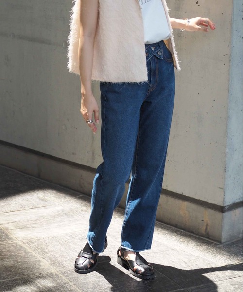 ベルトのボタンの留め方や裾のジップ開閉で自由でマルチな着方ができるデザインデニムパンツ◇Point◇ウエストデザインでコーディネートの主役になるパンツ◎ストンと落ちるシルエットで足長効果を期待できるのも嬉しいポイント。◇Material◇白い衣服と重ね着用されますと色移りすることがありますので、ご注意ください。色落ちしますので他の物と同時洗濯しないで下さい。◇Coordinate◇カジュアルからモードまでどんなトップスにも馴染み、シンプルなスタイリングでもこなれた印象に!取り入れるだけで、ワンランク上の着こなしが叶う、ディティールにこだわった一枚です♪※照明や天候により実際の色味と異なって見える場合がございます。ご了承くださいませ。