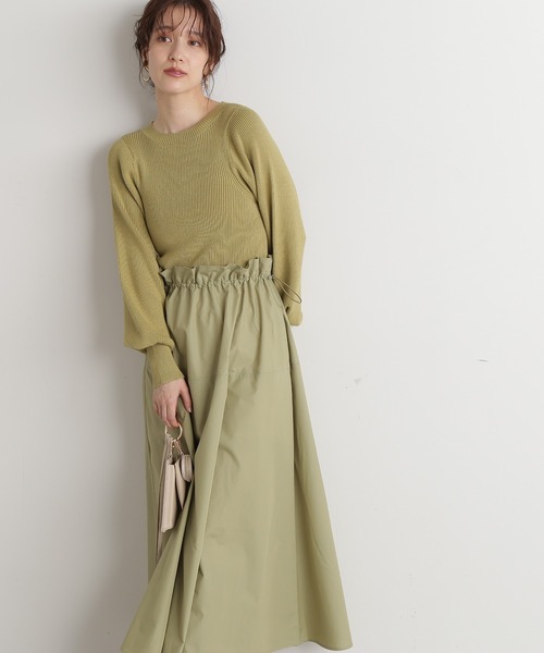 一枚で迷わずコーディネートが決まる、ニットとスカートをワントーンでドッキングした大人ムード抜群なワンピース。上身頃はすっきり、袖のみボリューム感があり、袖口長めのデザインでフィットします。スカート部分は、ウエスト脇にドローストリングを施して立体的なシルエットを演出。足元はブーツを履いてボリュームをだすのがオススメです。【Designer's Voice】ウエストがドロスト仕様で中にゴムが通っているのでウエストの大きさを調節できます。幅広い体系の方に着用していただけます。ニット部分はボリューミーな袖がポイント、スカート部分はトレンドのシャカシャカ素材です。【Fabric】ニット&布帛ドッキング**********************透け感:なし裏地:なし伸縮性:ややあり光沢感:なし生地の厚さ:普通**********************