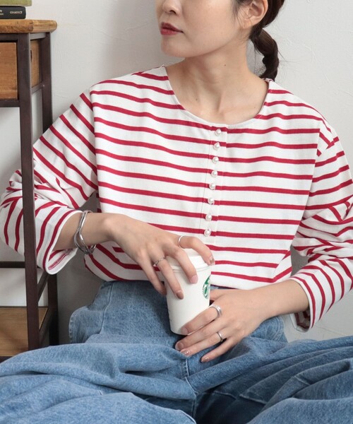 ◇fredy emue◇【2023 AW】パールボタンがポイントのヘンリープルオーバーが秋仕様になって登場!●point・パールボタンがポイントになる定番のボーダーカットソーが秋バージョンで登場・カジュアルなボーダーにパールボタンの組み合わせが上品なj女性らしい印象をプラスします・首元が空きすぎないヘンリーネックはカジュアルコーデに使いやすいアイテムです・長すぎず短すぎない丈感がスタイルアップを叶え、ウエストインをしてももたつかないので、ストレスなく着用いただけます・程よくすっきりとしたシルエットなので1枚着ではもちろん、ジャケットなどのインナーとしても着用いただけます・前後2WAY仕様なのでコーディネートに合わせて着回しがしやすいのも嬉しいポイントです・引き続きトレンドのデニムアイテムと合わせたり、スラックスを合わせたトラッドなスタイルもおすすめです透け感:なし裏地:なし伸縮性:若干あり光沢感:なし洗濯:手洗い可●お取扱い上のご注意●*商品を長くご愛用していただきたいため、アテンションタグがある場合は必ずご確認の上、着用又はお取り扱い下さい。*店頭及び屋外での撮影画像は、光の当たり具合で色味が違って見える場合があります。商品の色味は、スタジオ撮影の画像をご参照下さい。*商品画像に関しては出来る限り忠実に表示出来るよう努めておりますが、お客様がご利用のモニターの設定及び特性により、実際の商品と比較し色味に若干の誤差が生じる場合があります。*画像の商品はサンプルとなりますので実際の商品と仕様、加工、サイズが若干異なる場合がございます。*製品洗い加工の商品は、多少の歪み、シワなどが見られたり、風合いやサイズ等が1枚1枚異なります。汗や雨等で濡れた時や、摩擦により色落ちし、他の衣料を汚すことがありますので(特に濃色のもの)ご注意ください。◇商品のお気に入り登録◇【お気に入りに登録 ♡マークをクリック】を是非ご活用ください! 再入荷の通知や、ラスト1点の通知、セールの通知がいち早く届きます。◇ブランドのお気に入り登録◇新商品や再入荷など、いち早くブランドのお得情報が届きます。