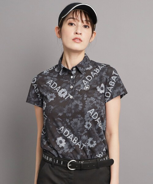 【デザイン】 フラワーフォトプリントと「ADABAT」ロゴを大胆にデザインした半袖ポロシャツです。 一枚でアクセントになるデザインなので、シンプルなボトムとのスタイリングがおすすめ。 胸元に、ポイントロゴをラインストーンでデザインしました。 アダバットらしいこだわりポイントです。 ボタンをゴルフボールにした遊び心あるデザインです。 ぜひゴルフ場で着用していただきたいアイテムになります。 同じフラワー柄のスカートをご用意しております。 セットアップで着用するとワンピース風に見えます。(品番:119-67811) 【素材】 さらさらした肌離れのいい素材です。 全方向にストレッチしますので、動きやすくゴルフのスイングや脱ぎ着も快適です。 紫外線対策にうれしいUVカット機能が付いています。 汗をかいたときは吸水速乾機能で素早く乾く素材です。 ※この製品は、太陽光線中の紫外線(UV)を通しにくくします。この効果は永久的ではありません。 ※この製品は、吸水速乾効果のある素材を使用しています。この効果は永久的ではありません。 ※この商品はサンプルを使用して撮影しております。デザインや配色などが実際の商品とは一部異なる場合がございますのでご了承ください。 こちらの商品は主に秋に着用いただける商品です。 モデル情報:身長162cm B72 W57 H82 着用サイズ:38(M) 店舗へのお問い合わせ商品番号:119-17821 ●製品寸法: 36(S):着丈60cm B84cm 袖丈16cm 肩幅36cm 38(M):着丈60cm B90cm 袖丈16cm 肩幅37cm 40(L):着丈62cm B96cm 袖丈16cm 肩幅39cm 42(LL):着丈64cm B102cm 袖丈17cm 肩幅40cm 備考: