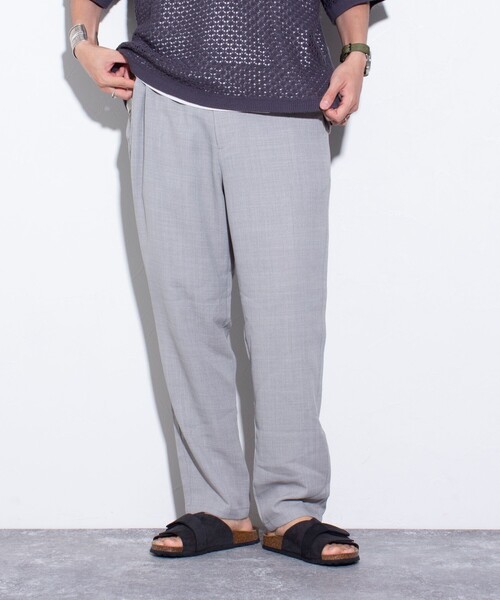 高機能リネン調ポリエステル素材を使用したテーパードパンツ すっきりとしたテーパードシルエットのベーシックパンツ。 ウエストイージー仕様でスリムなラインながらリラックスして着用できます。 上品な天然素材見えで、防シワ・ストレッチ・イージーケアと機能を合わせ持ったパンツです。 Reflax(リフラクス)は麻のようなナチュラル感と、ドライな風合いのリネンライクファブリック。 シワになりにくく、毛羽も出にくい 多機能素材です。 また、一部にペットボトルや繊維クズなどをアップサイクルした原料を使用しています。 人にも環境にもやさしい素材です。 【GLOSTER/グロスター】 “やさしさ・さわやか・童心" この3つの考え方をベースに、シンプルな中に着心地の良さがあり、誰かにちょっと褒められるようなストーリーが生まれる良質なデイリーユースアイテムを提案します。 フレンチカジュアル、トラッドを基本として遊び心のあるディテール、色柄、サイジングなどでアレンジし、エイジレスでタイムレスな展開。 GLOSTERは毎日がほんの少しでもHAPPYになれることを提供し続けます。 ※お取扱い上のご注意 アテンションタグを必ずご確認の上、着用又はお取り扱いください。 ※店頭及び屋外での撮影画像は、光の当たり具合で色味が違って見える場合があります。 ※商品画像に関しては出来る限り忠実に表示出来るよう努めておりますが、お客様がご利用のモニターの設定及び特性により、実際の商品と比較し色味に若干の誤差が生じる場合があります。 ※画像の商品はサンプルとなりますので実際の商品と仕様、加工、サイズが若干異なる場合がございます。 ◇商品のお気に入り登録◇ 【お気に入りに登録】を是非ご活用ください。 再入荷の通知や、ラスト1点の通知、セールの通知がいち早く届きます。 ◇ブランドのお気に入り登録◇ 新商品や再入荷など、いち早くブランドのお得情報が届きます。