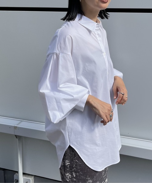 ーーーバックスタイルにタックを入れたコクーンシルエットのビッグシャツ。シワになりにくく型崩れにも強いソロテックス素材を採用しています。ーーー【デザインと特徴】袖中心にタックを施し、袖口のアジャストボタンの位置を変えることで袖のボリューム変化を楽しめるデザインにしています。襟を抜かなくてもコクーンシルエットが綺麗に出るようにパターンに拘りました。一見シンプルでミニマルな印象ですが、細部のディティールや袖口変化の変形シルエットがスタイリングに個性をプラスしてくれます。【素材特徴】ソフトでしなやかなクッション性を持ち合わせており、ふんわりとしたボリュームが素早く戻る素材です。化学繊維でありながら質感もなめらかで肌馴染みが良いです。ポリエステルのナチュラルなストレッチ感が着心地抜群。型崩れに強く丈夫な素材です。グレーとブルーの2色はシャンブレーを使用しているので、奥行きのある表情豊かな面感がポイントです。【スタイリング】1枚でスタイリッシュにも、キャミワンピースの上から羽織っても、ベストのスタイリングのインナー使いも。様々なスタイリングに使いやすい万能シャツです。レギュラーカラーなのでお仕事服にも最適です。【洗濯可否】洗濯機でのお手入れが可能です。---------------------------------------------------------《インフォメーション》◆商品のお気に入り登録完売していても再入荷時に再入荷通知を受け取ることができますので、是非ご登録ください♪◆ブランドのお気に入り登録新商品や再入荷などの情報を受け取ることができますので、是非ご登録ください♪公式Instagram >>> 【@apartbylowrys 】おすすめアイテムや新作情報、" ショップニュース "を更新中! ぜひフォローしてみてくださいね^^