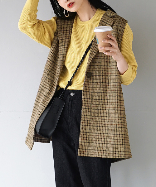 チェックの柄がシーズンムードを高めてくれる、大人のロングジレ 素材・カラー・シルエット、そして着心地にこだわってつくる 「大人が着たくなるカジュアル」をapartment department(アパートメントデパートメント)からお届けします。 素材 やわらかく滑らかな肌ざわりで少し光沢感がある混紡糸で織られたジャガード素材を使用したロングジレ。 軽くシワになりにくく、ほどよい伸縮性があるジャガードジャージなので、着心地も楽ちんです。 デザイン ツイード調のシックなチェック柄と、テーラーカラーが大人で トラッドなテイストをプラスしてくれるロングジレです。 ボクシーなシルエットで長めの丈なので、着るだけできれいな「Iライン」に。 薄手で軽い着心地でシワになりにくい素材感なので、 アウターを羽織ってもごわつかずにロングシーズン楽しんでいただけます。 コーディネート チェック柄ではありますが、ベージュベースの落ち着いた色味なので、 カラーニットやシャツなどを合わせるのもおすすめです。 カジュアルなワークスタイルにプラスして、大人カジュアルにも。 Iラインのすとんとしたシルエットのスカートに合わせて、 少しモードでフェミニンなスタイルも叶います。 洗濯:手洗い可 ※アイロンの際はあて布をご使用ください