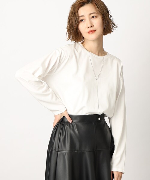 1枚着としても、カーディガンなどのインナーとしても活躍! 1枚あると便利なベーシック大人ロンT 【デザイン】 大人っぽさのある上品なロゴがポイントのシンプルな長袖ロンTです。 ※(004)カラーは無地です。 程よくラフ感あるサイジングで抜け感あるシルエットです。 サイド部分にスリットを施し、インスタイル、アウトスタイルのどちらも楽しめる1着です。 【素材】 コットン(綿)素材にポリエステル糸をプレーティングした表面がきれいな仕上がりになる天竺素材を使用しています。 毛羽感がなくすっきりした素材なので、キレイ目にも着こなせて頂ける1枚となっています。 【スタイリング】 様々な着こなしが出来るシンプルなロンT。 パンツにもスカートにも合わせやすいアイテムです。 プリントを施した3色(104)(114)(150)カラーはのカーディガンなどを羽織る晩夏~秋口にも活躍出来るようにフロント部分にプリントを施しています。 【ロゴの意味(104)(114)(150)カラー】 REUNIR(結ぶ・集める) LE MINUIT(真夜中・深夜) モデル情報:身長166cm B80 W59 H86 着用サイズ:02(M) 店舗へのお問い合わせ商品番号:768-17316 ●製品寸法: 01(S):着丈66cm B103cm 袖丈50cm 肩幅47cm アームホール19cm 02(M):着丈68cm B106cm 袖丈51cm 肩幅48cm アームホール20cm 03(L):着丈70cm B109cm 袖丈52cm 肩幅49cm アームホール21cm 04(LL):着丈72cm B112cm 袖丈53cm 肩幅50cm アームホール22cm 05(3L):着丈74cm B115cm 袖丈54cm 肩幅51cm アームホール23cm 備考: