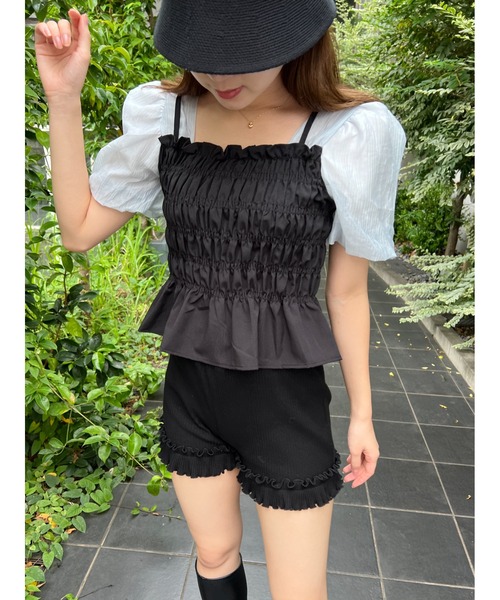 風通しのいいブラウスとシャーリングキャミのフェイクレイヤード 一枚で様になる便利なトップス セットなのでずれたりするストレスフリーで着用できます! ■おすすめスタイリング スカートやショートパンツと合わせて韓国風コーデに シンプルなデニムと合わせて大人ガーリースタイルにも! シャーリング×ウエストフリルなのでスッキリしたボトム合わせがおすすめです。 【WC ZOZOTOWN お買い物ガイド】 ▼商品のお気に入り登録 商品ページやブランドTOPの♡をクリックするだけ◎ 再入荷通知や、ラスト1点の通知、セールの通知をすぐに受け取れます。 【商品画像について】 ・画像はサンプルです。実際の商品と仕様、加工、サイズ、カラーが若干異なる場合がございます。 ・撮影場所や照明の照射・角度、お使いのモニター環境によりお色味が異なる場合がございます。予めご了承ください。 【取り扱い注意事項】 ・素材の特性上、水や汗で濡れたまま長時間放置したり漂白剤や蛍光剤入りの洗剤を使用することはお避け下さい。 ・濃色のアイテムは移染の恐れがあるため別洗いにしてください。 ・アテンションタグ・洗濯表示を必ずご確認の上、ご使用下さい。 ・商品によってはシワがつきやすく、届いた際畳ジワや折りジワなどが強く出る場合がございます。 ・生地の素材上、においが気になる場合がございます。その際は陰干しして頂くと、ほとんど感じられなくなります。 【サイズ表記について】 ・表記しているサイズは、すべてスタッフが採寸した実寸値になっております。 ・正確なサイズを測るよう心掛けておりますが、採寸用サンプルの実寸値となりますので、 お届けする商品と表記寸法の間に多少の誤差が生じる場合がございます。 ・商品により±2cm程度(ニットの場合は2~4cm程度)サイズに誤差がある場合がございますので、予めご了承ください。