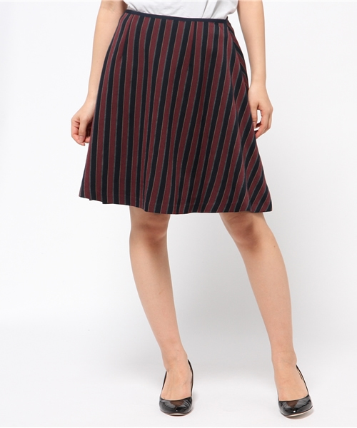 Loungedress(ラウンジドレス) 人気のレジメン調スカートにウール素材が登場。 旬の着こなしに決まるトラッド感のあるレジメンスカートは、シンプルなニットに合わせて冬に向けて活躍しそうな1枚です。