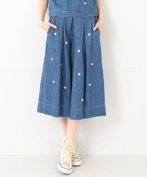 Ray BEAMSの今季のテーマである、“Mannish and Girlish”に合わせてスペシャルオーダーしたイチオシアイテム。 「MUVEIL」のコレクションテーマ、“深海”から海の泡をイメージしてパールを施しました。 デニムでカジュアルさを出しつつも、パールを施すことで上品な印象に。 トップスとのセットアップはもちろん、シンプルなTシャツを合わせたリラックス感漂うスタイリングもオススメ。 足元はスポーティーにスニーカーを合わせるのがオススメです☆ MUVEIL / ミュベール デザイナーの中山路子が2007年秋冬シーズンよりスタートさせたブランド。ブランド名は、フランス語ですずらんを意味するmuguetと、英語で“かげから幸せを願う”を意味するveilを合わせたもの。大人の女性だからこそ似合うフェミニンで遊び心のあるディテールと、デイリーに取り入れやすいシンプルで美しいラインが魅力。 店舗へお問い合わせの際は下記品番をお伝えください。 品番:61-21-0126-614