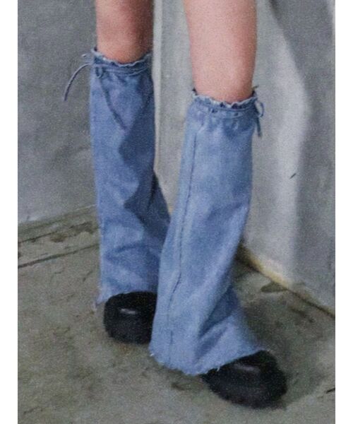 【10周年DENIM CAPSULE COLLECTION】Y2Kファッション最先端のデニムレッグウォーマーです。膝下で止めて頂く丈ですが、裾が切りっぱなしにしているので身長に合わせてカットして頂くことも可能です。同じデニムシリーズのミニスカートと合わせて着て頂くのがオススメです。