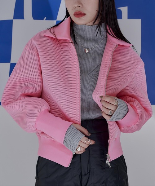 ・ハリ感のあるダブルラッセル素材を使用したブルゾン。・丸みのある女性らしいシルエット。・ボリュームスリーブがトレンドスタイルをメイク。・ダブルジップがこなれ感のあるデザイン。※当商品は機械による生産の過程上、どうしても"生地を織る際の糸の継ぎ目"や多少の"ほつれ"、他繊維の"混紡"、また、形やサイズや柄に多少の"誤差"が生じる場合がございます。※サイズは、実寸サイズを測っているため多少誤差がでる場合があります。製造工程の関係上、各採寸箇所実寸(平置き)より【約-3cm~+3cm】程度は誤差の許容範囲とさせて頂いておりますので、予めご了承くださいませ。※メーカーより密封状態で入庫し、検品時に再度袋詰めを行っておりますが、素材により染料等の臭いが強い場合がございます。※発送上の状態によって商品がシワになる場合がございます。※商品により色落ち・色移りがある場合がございますので、品質表示をご確認の上、お取り扱いにご注意くださいませ。【伸縮性】リブ部分にあり【透け感】なし