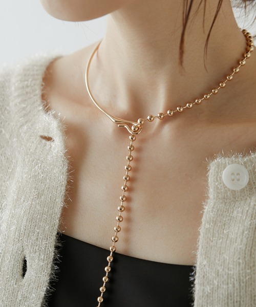 2023 autumn & winter ボールチェーンがMIXされたデザインチョーカー ●ありそうでないデザイン性抜群のゴールドチョーカー ●シンプルなトップスなどに重ねるだけで存在感を放ってくれるオシャレ見えアイテム ●程よいボリューム感のボールチェーンなのでカジュアル過ぎず、キレイめなスタイルにもマッチ 【MATERIAL】真鍮・鉄 【SIZE】 ボール:33cm 内径:25cm 【気になる商品は「お気に入り」登録を】 ハートマークをクリックし、お好きなカラーを選んでお気に入りに登録すると 入荷情報や残り1点の通知、完売カラーの再入荷、セール情報などを受け取ることができます。 ※撮影場所やお使いのモニター環境により若干お色味が異なる場合がございます。 特にロケの撮影では明るく見える傾向にございます。詳細撮影画像で色味をお確かめくださいます様お願いいたします。 ※サンプルで撮影をしております。若干の仕様が変更になる場合がございますので予めご了承の上ご注文くださいますようお願いいたします。 ※サンプルでの採寸のためあくまで目安となります。予めご了承ください。