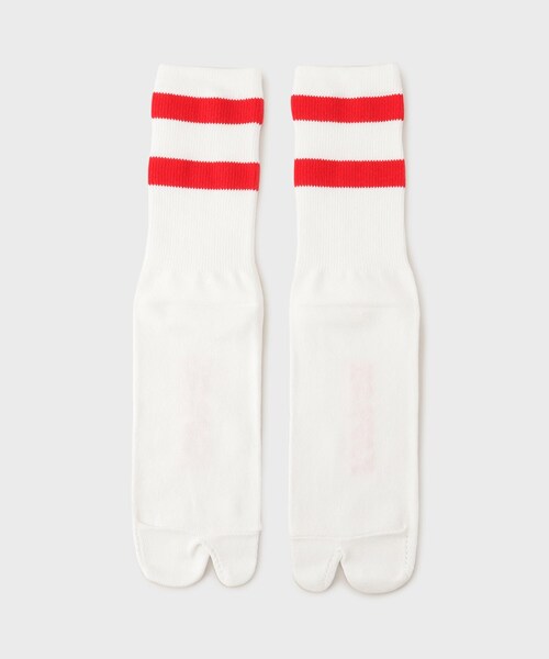 エプロンを中心としたワークウェアを展開するNAPRONのオリジナルソックスライン配色がすてきなデザインはGIFTにもおすすめです!【デザインポイント】極太糸を靴下に仕立てました。ローゲージのオールドマシーンで時間を掛けて丁寧に編まれたこだわりのMADE IN JAPANの足袋型ソックスです。親指とそれ以外の指で二股に分かれている足袋型デザインは、足のつま先に力が入りやすく、地面を力強く掴めるため一度履くとやみつきになる履き心地です。NAPRONオリジナルロゴが足裏にデザインされています。こだわりのソックスはちょっとしたギフトにもおすすめです!こちらはWEBと一部店舗限定展開のバイイング商品になります。店舗へのお問い合わせ商品番号:G87-01437●製品寸法:00(FREE):対応サイズフリー 高さ19cm備考: